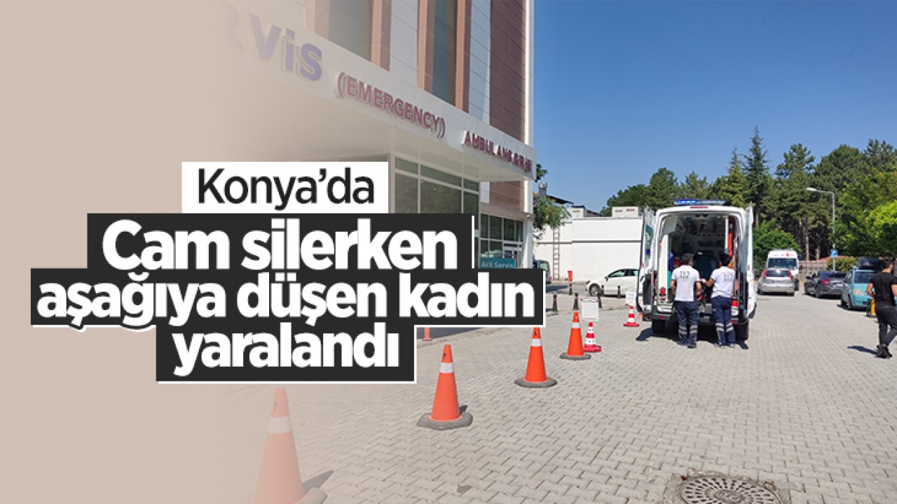 Konya'nın Kulu ilçesinde bir apartmanın balkon camında temizlik yaptığı sırada korkuluk demirlerin kopması sonucu ikinci kattan düşen kadın yaralandı.