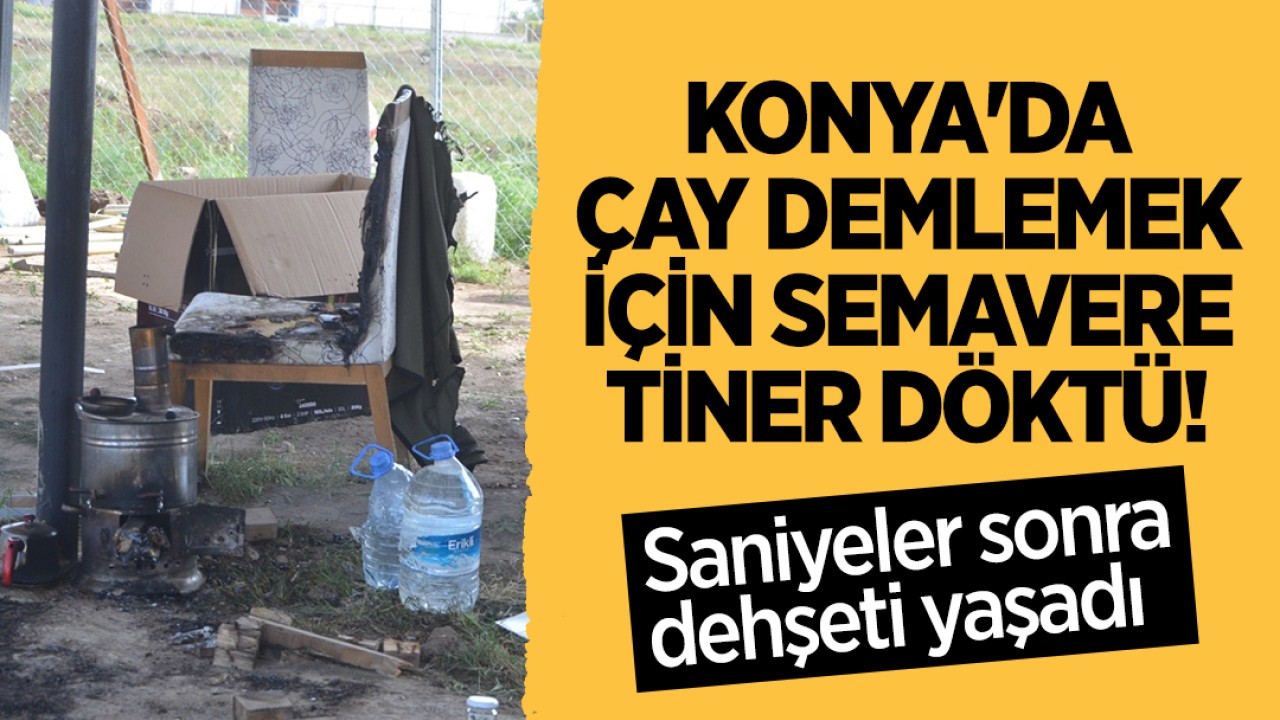Konya'nın Ereğli ilçesinde Ercan Yıldırır’ın (41), çay demlemek için semaverin ateşini tutuşturmak amacıyla döktüğü tiner alev aldı. Bacak, kol, el ve vücudunun çeşitli yerlerinde ikinci derece yanıklar oluşan Yıldırır, hastaneye kaldırıldı.