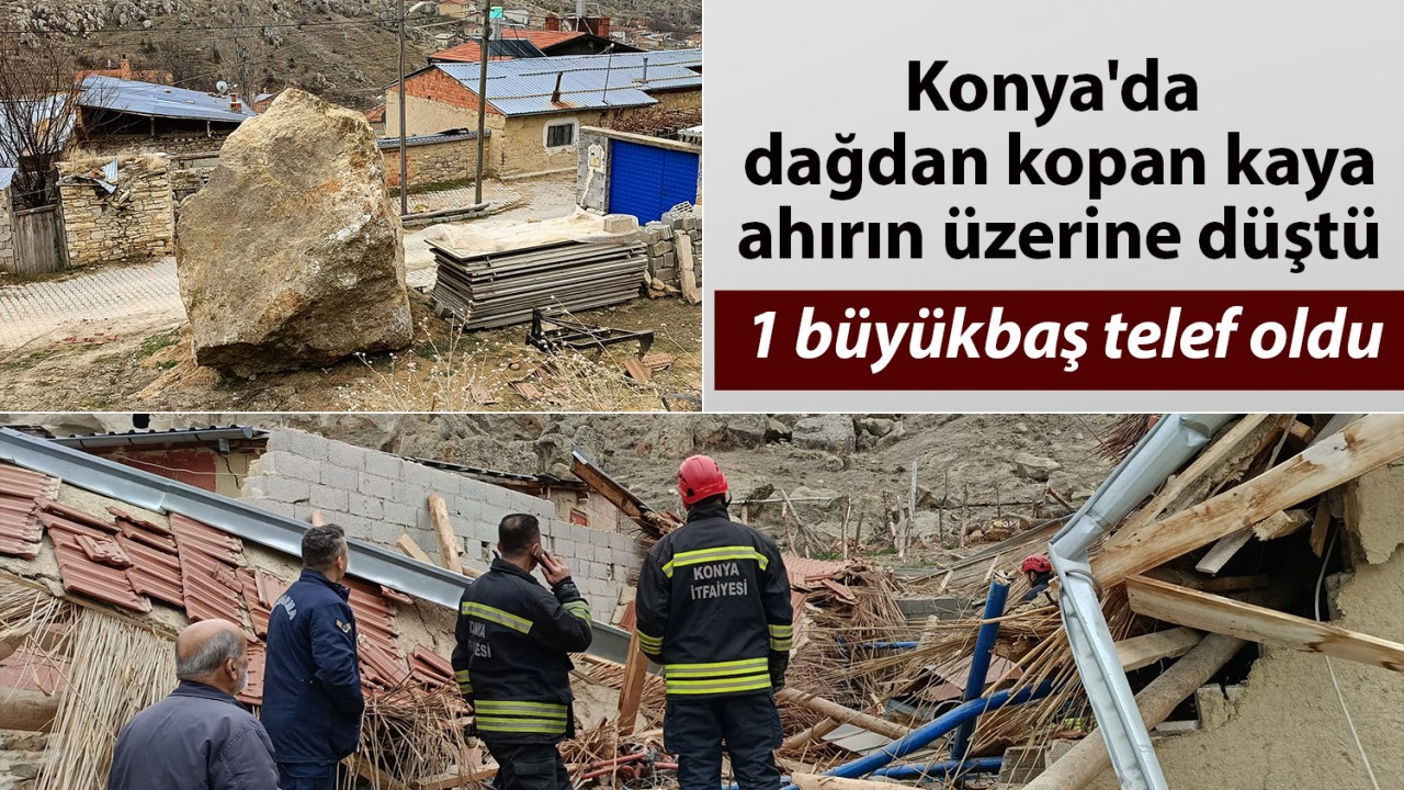 Konya'nın Selçuklu ilçesinde kaya düşmesi sonucu 1 ahır çöktü. Ahırda 5 büyükbaş hayvan kurtarılırken 1 hayvan telef oldu.