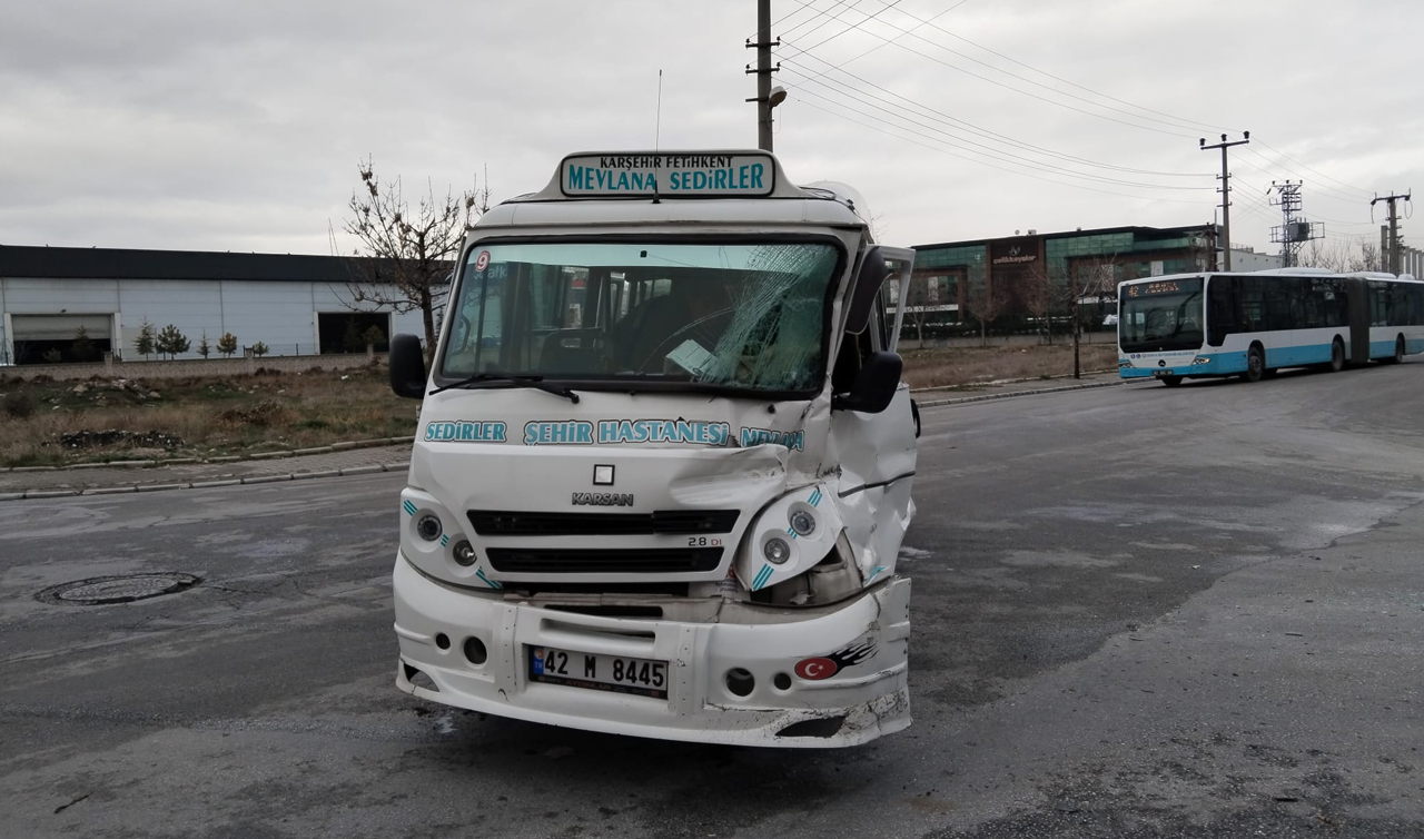 Kaza, sabah saatlerinde Karatay ilçesi Karşehir Caddesi ile Kardelen Sokak’ın kesiştiği yolda meydana geldi. Alınan bilgiye göre Mevlana-Sedirler hattında yolcu taşıyan dolmuş ile midibüs çarpıştı.
