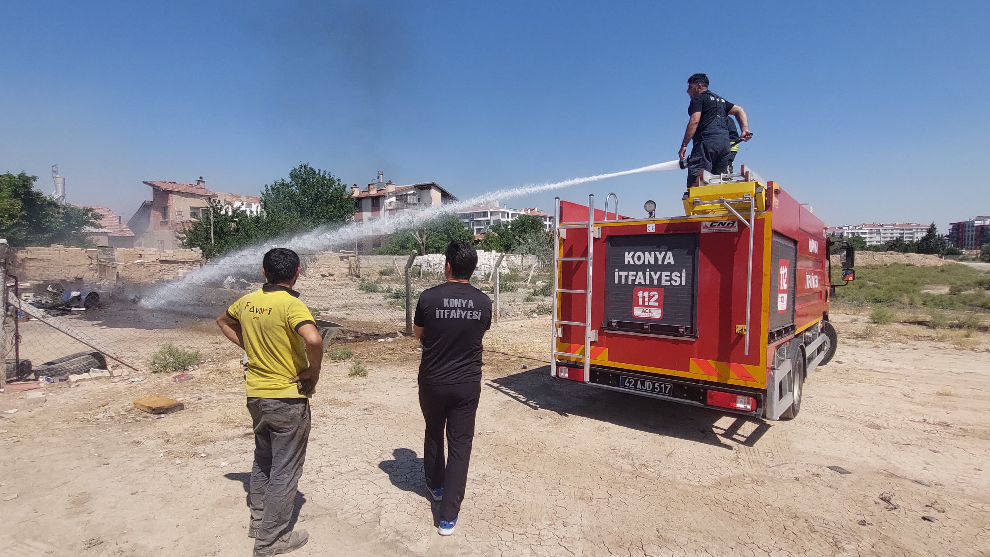 Emirgazi Mahallesi Aytürk Sokak'ta gökyüzüne yükselen dumanları gören vatandaşlar durumu hemen itfaiyeye bildirdi.