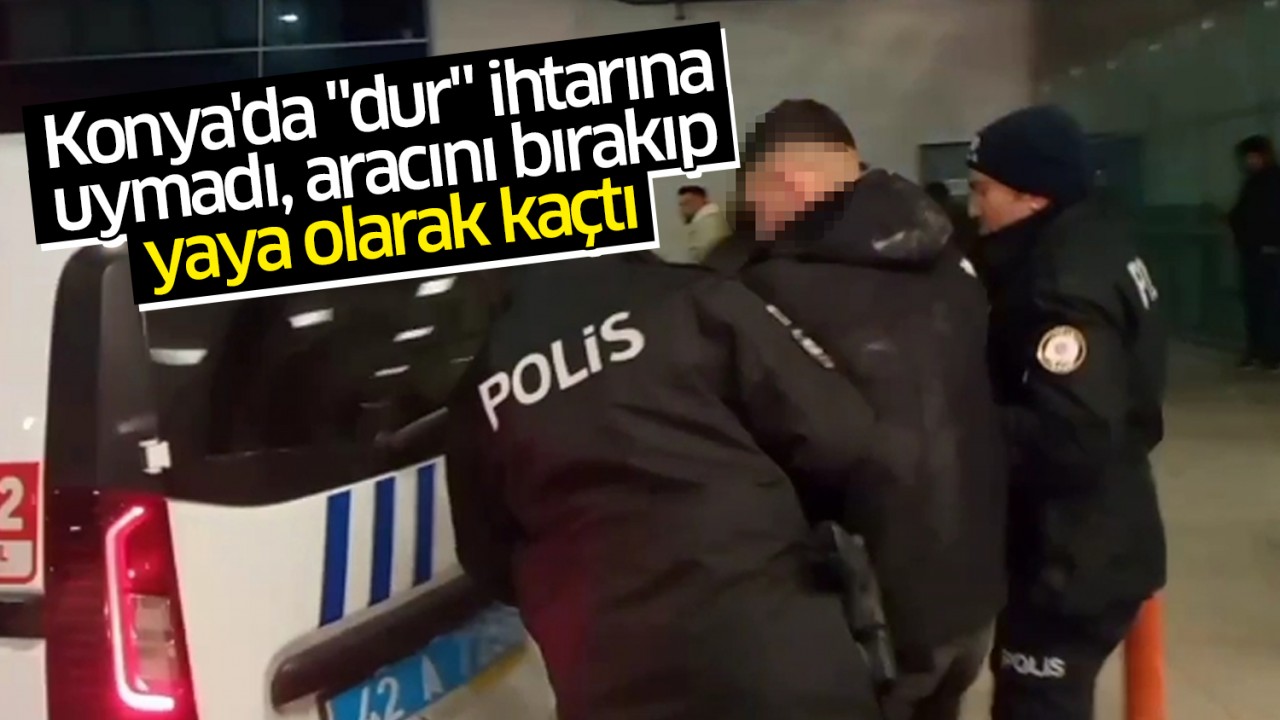Konya’nın Karatay ilçesinde polisin "dur" ihtarına uymayan alkollü sürücü aracını bırakıp yaya olarak kaçtı. Yaklaşık yarım saat süren kovalamacanın ardından yakalanan sürücü gözaltına alındı.