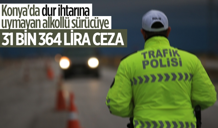 Konya'da polisin "dur" ihtarına uymayan alkollü sürücüye 31 bin 364 lira para cezası kesildi, aracı trafikten men edildi.