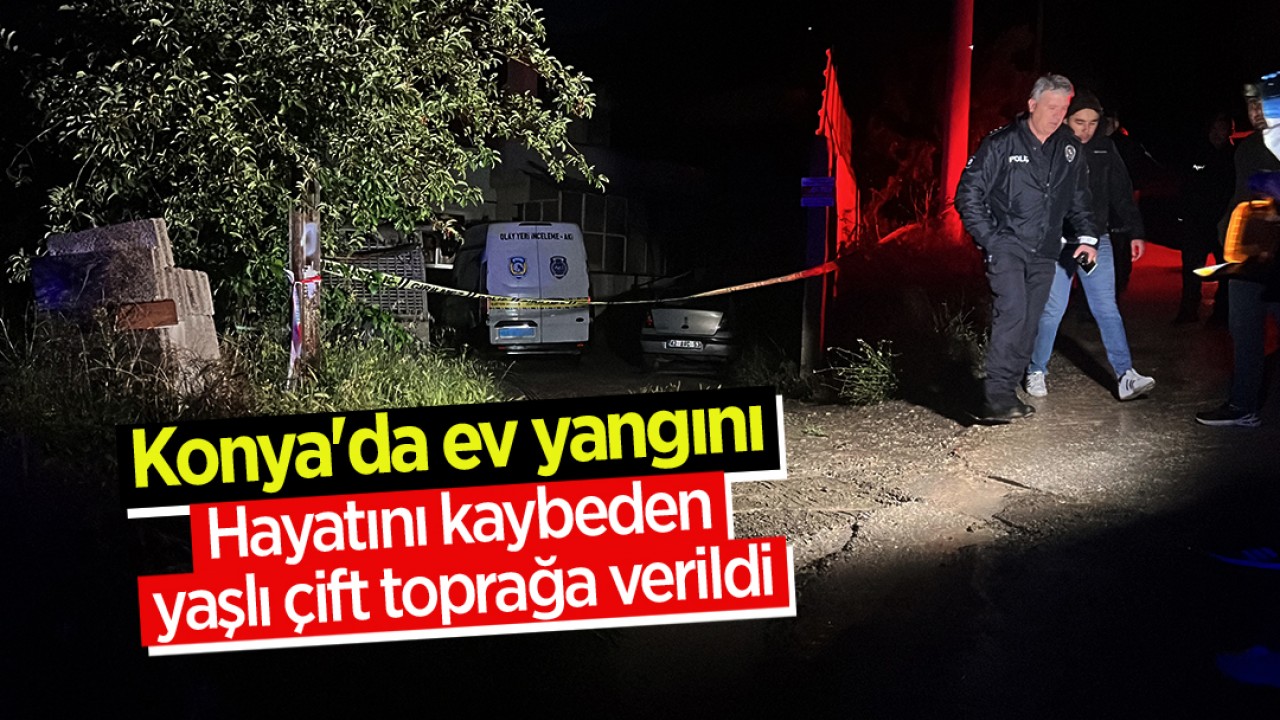 Konya'da tek katlı müstakil bir evde çıkan yangında hayatını kaybeden yaşlı çiftin cenazesi kılınan cenaze namazının ardından son yolculuğuna uğurlandı.