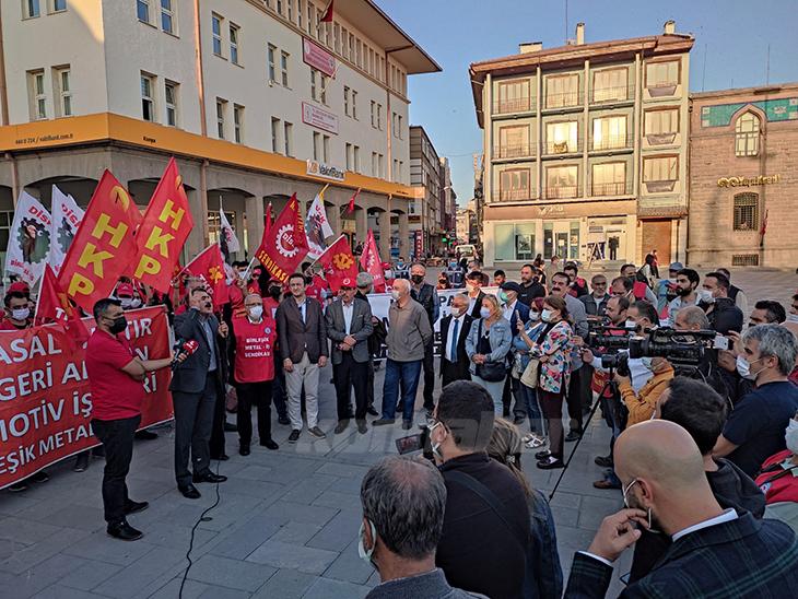 Çerkezoğlu, burada yaptığı açıklamada, işçilerin sorununun çözümü için Konya Valisi Vahdettin Özkan ile görüşerek yardım istediklerini dile getirdi.