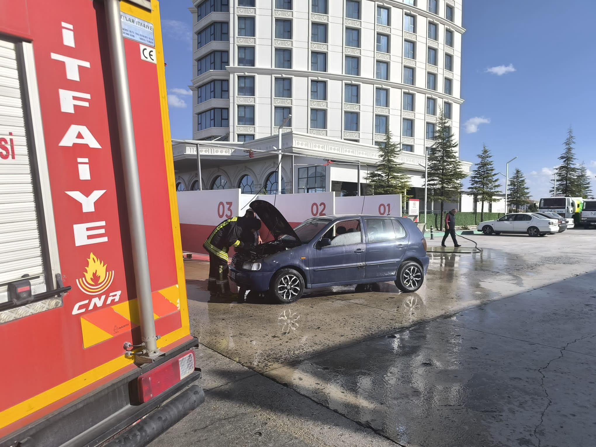 Olay, sabah saatlerinde ilçe merkezindeki bir akaryakıt istasyonunda meydana geldi. Edinilen bilgiye göre, B.A. idaresindeki 20 AGV 156 plakalı otomobil, akaryakıt ikmali yaptıktan sonra istasyondan ayrıldığı sırada, henüz bilinmeyen bir nedenle motor kısmından alev aldı.