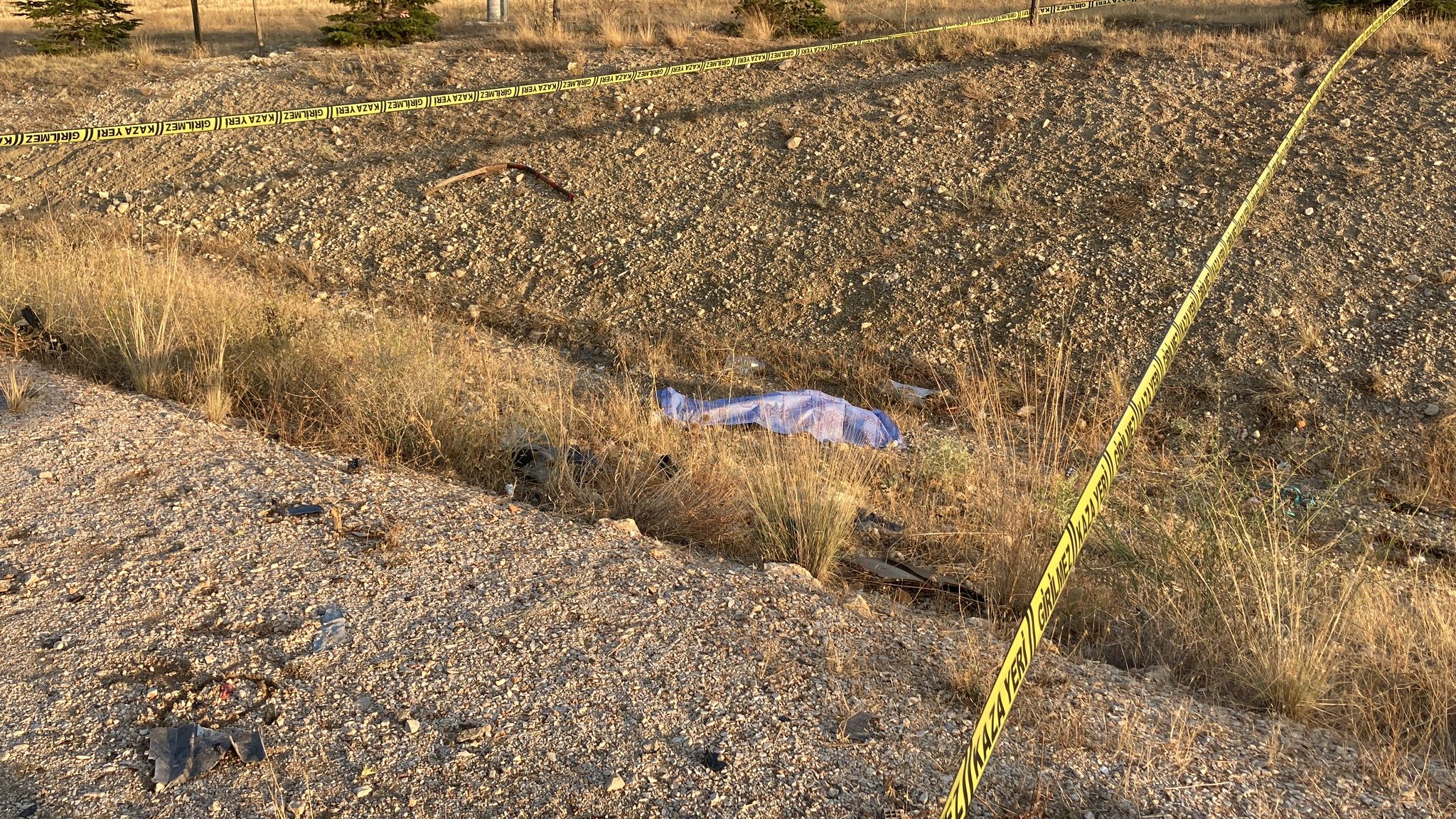 42 ALN 658 plakalı otomobil çekiciye yüklenirken, Orhan kaza yaptığı yere giderek otomobilinden kalan parçaları toplamak için yola çıktı.