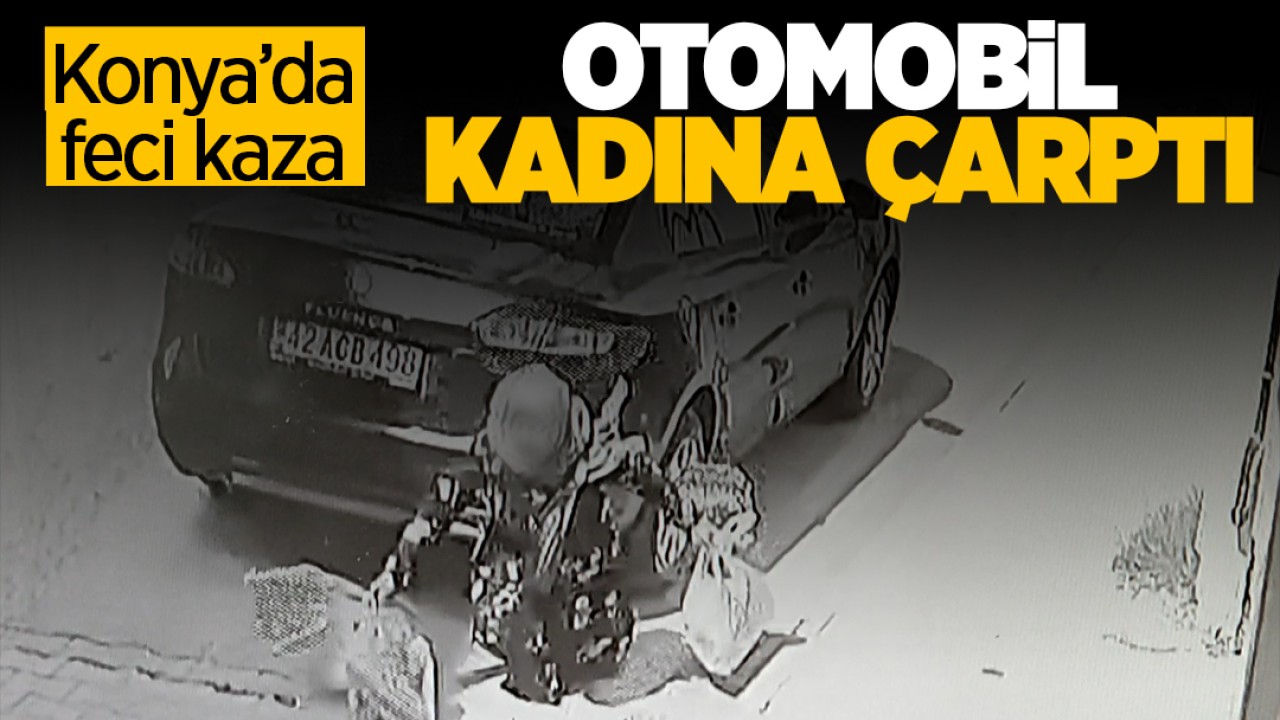 Konya'nın Kulu ilçesinde alışverişten dönen kadına otomobil çarptı. O anlar bir iş yerinin güvenlik kamerasına yansıdı.