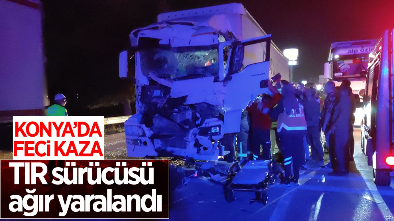 Konya'nın Kulu ilçesinde seyir halindeki TIR, kereste yüklü kamyona arkadan çarptı. Meydana gelen kazada tır sürücü ağır yaralandı.