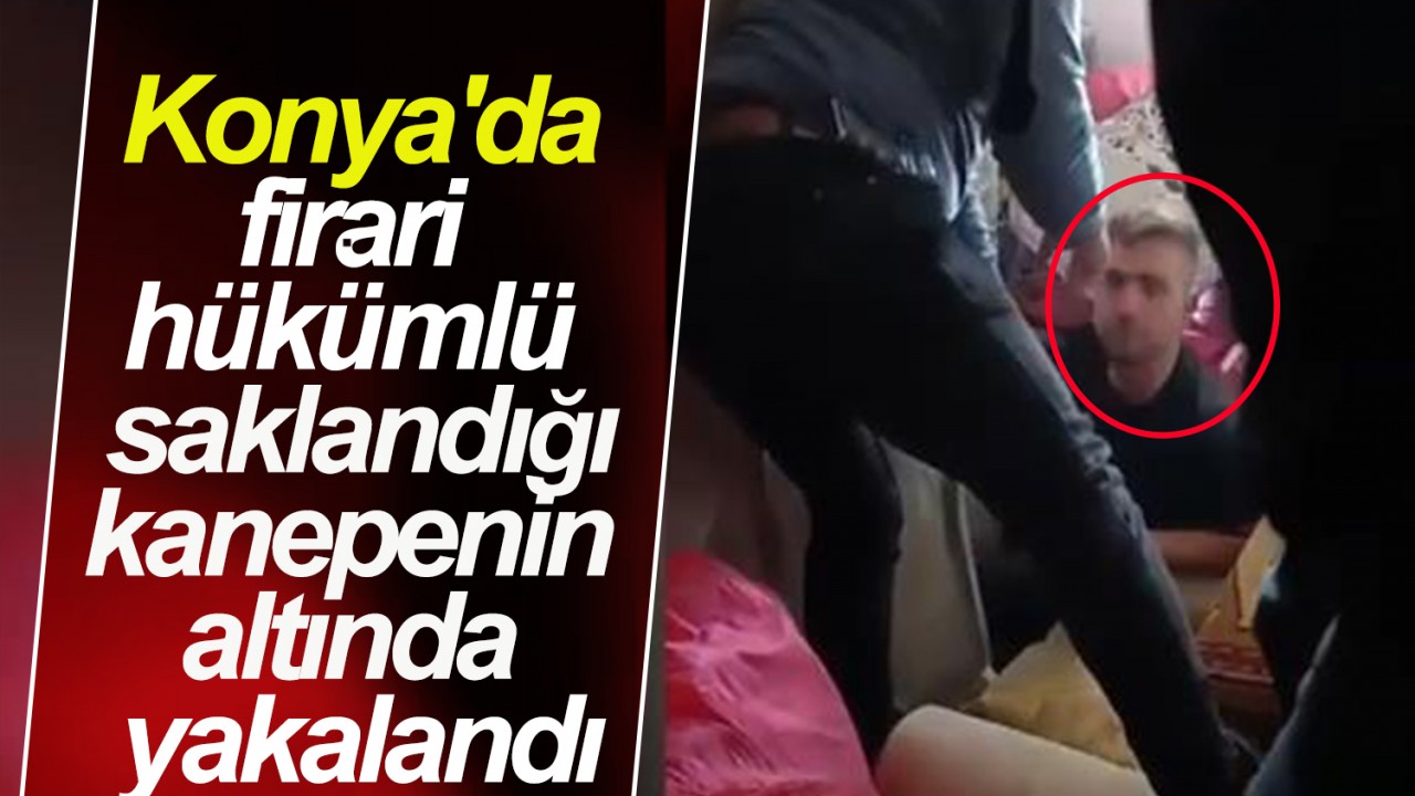 Konya'da 5 yıl kesinleşmiş cezası bulunan firari hükümlü H.Ş. (25), saklandığı kanepenin altında yakalandı.