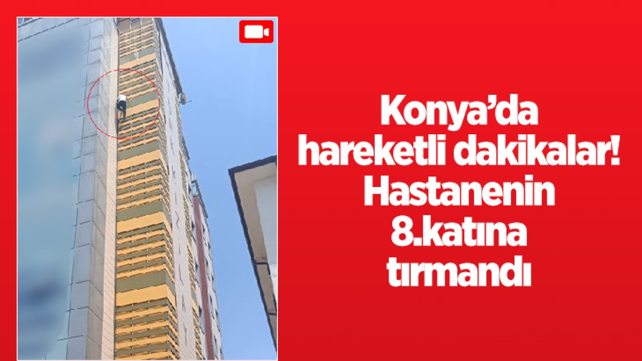 Konya’da özel bir hastanenin 8. katına tırmanan kişi polis ekiplerini harekete geçirdi. Şahıs, polisin yaklaşık 2 saat süren çabası sonucu ikna edildi.