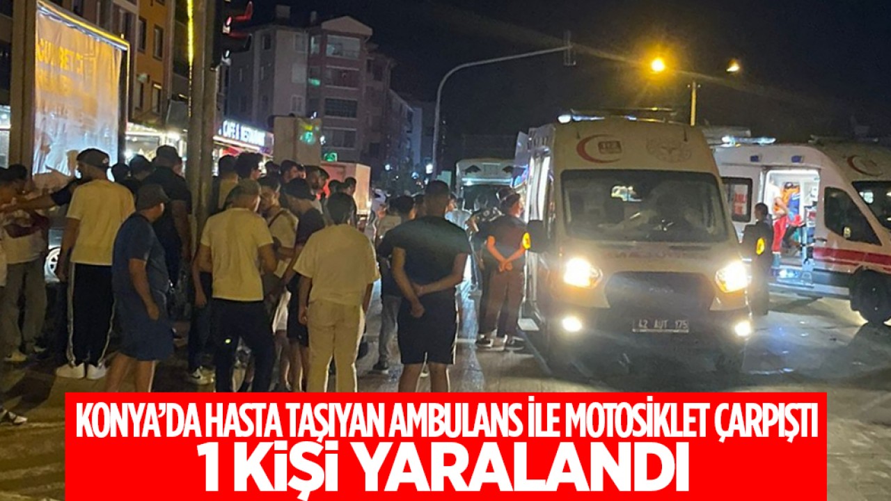 Konya'nın Kulu ilçesinde hasta taşıyan ambulans ile motosikletin çarpışması sonucu meydana gelen trafik kazasında 1 kişi yaralandı.