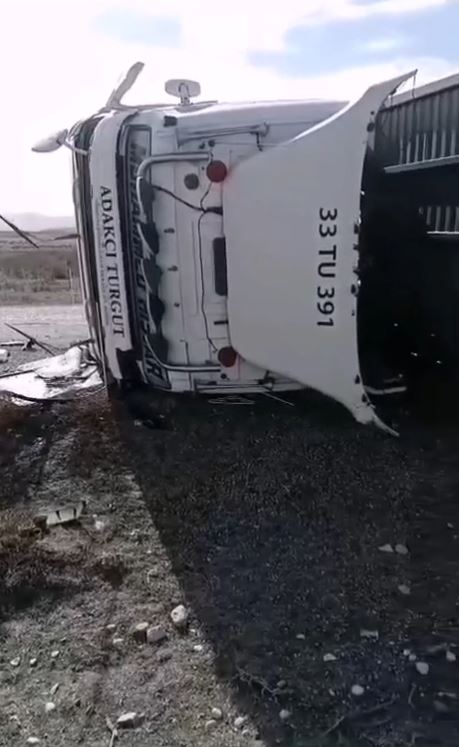 Konya’nın Çumra ilçesinde meydana gelen trafik kazası büyük üzüntüye neden oldu. Adakale Mahallesi yakınlarında büyükbaş hayvan taşıyan 33 TU 391 plakalı tır, sürücüsünün direksiyon hakimiyetini kaybetmesi sonucu kontrolden çıkarak yan yattı.