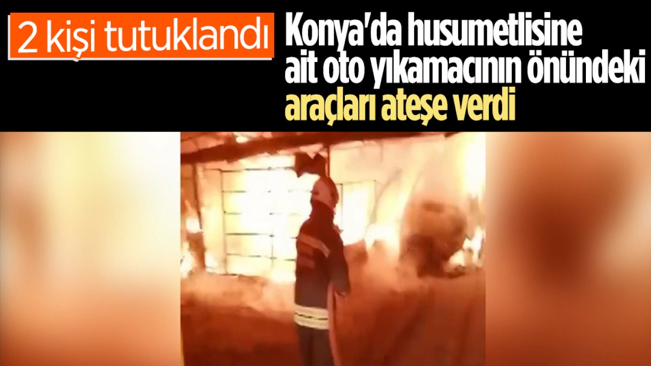 Konya'nın Ereğli ilçesinde, husumetlisi olan akrabası Erol Ç.'ye ait oto yıkamacının önündeki 2 otomobili ateşe veren Eser Bayram ile akaryakıt istasyonundan bidonla benzin alan Ali Sözeri, gözaltına alındı. Adliyeye sevk edilen 2 şüpheli, tutuklandı.