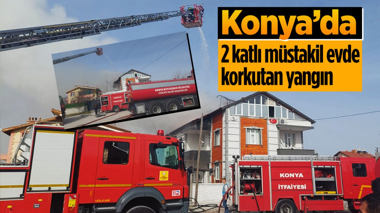 Konya’nın Meram ilçesinde iki katlı müstakil bir evde yangın çıktı. İhbar üzerine olay yerine çok sayıda itfaiye ekibi sevk edildi.