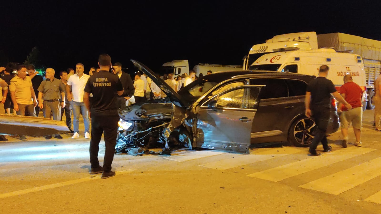 Çarpışmanın etkisiyle 42 plakalı otomobil trafik yön levhalara da çarparak yolun karşı şeridine geçerek durabildi. Kazada araç sürücüleri ile araçlarda yolcu olarak bulunan H. D. yaralandı.