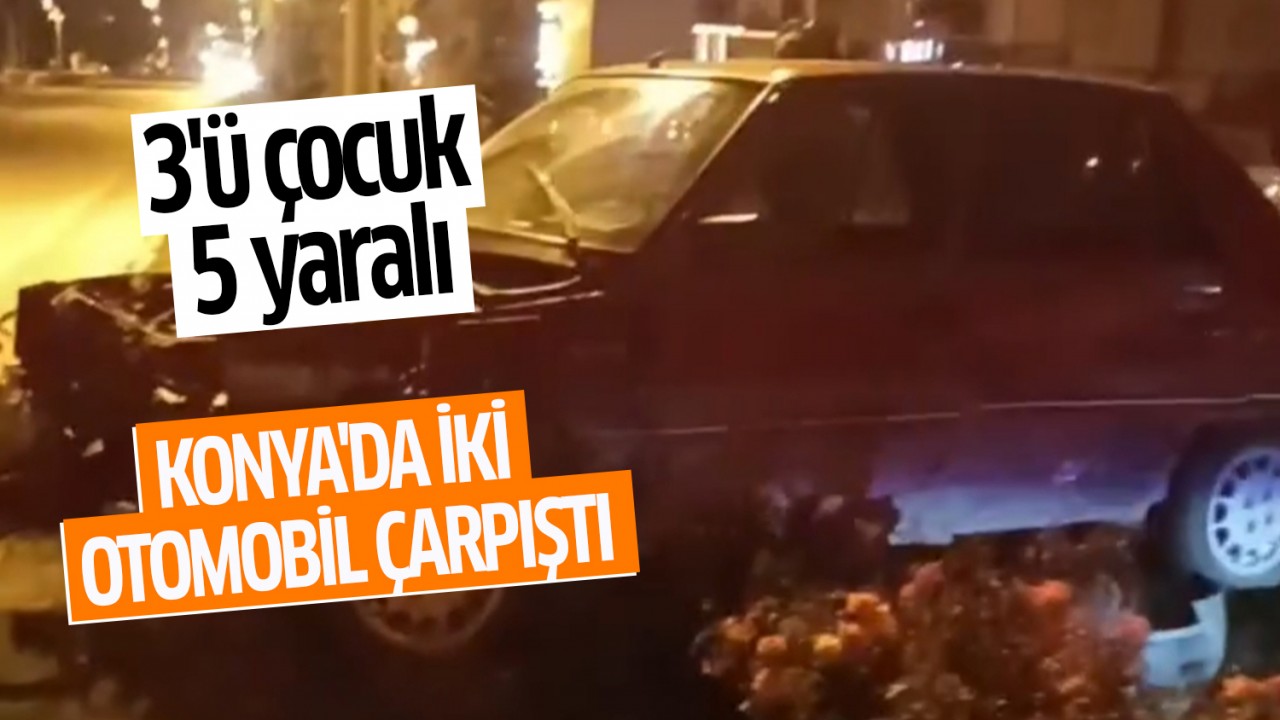 Konya'nın Kulu ilçesinde iki otomobilin çarpışması sonucu meydana gelen trafik kazasında 3'ü çocuk, 5 kişi yaralandı.