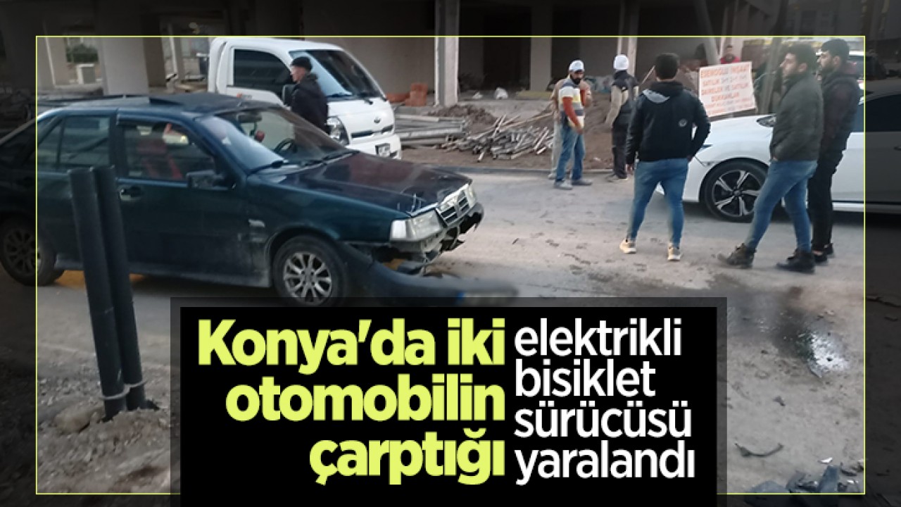 Konya'nın Kulu ilçesinde önce bir otomobilin daha sonra başka bir otomobilin çarptığı elektrikli bisiklet sürücüsü yaralandı.