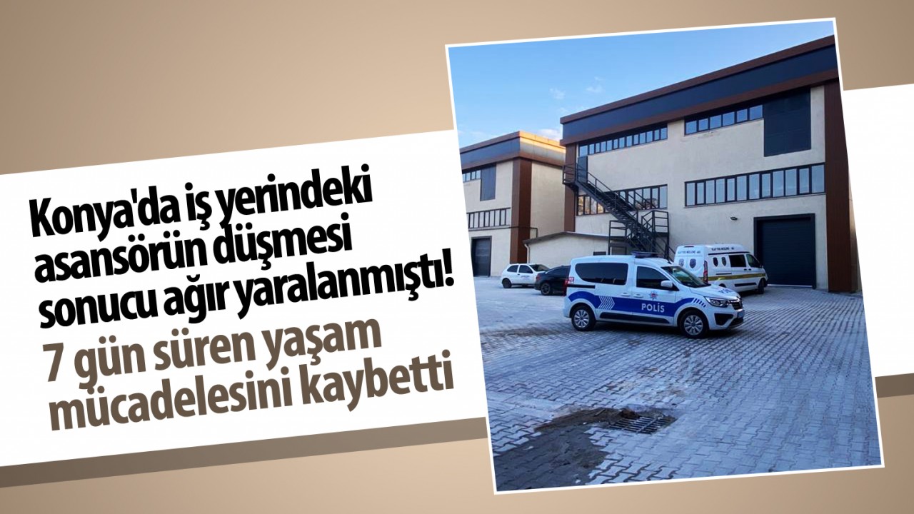 Konya'da iş yerindeki yük asansörünün düşmesi sonucu ağır yaralanan kişi tedavi gördüğü hastanede hayatını kaybetti.