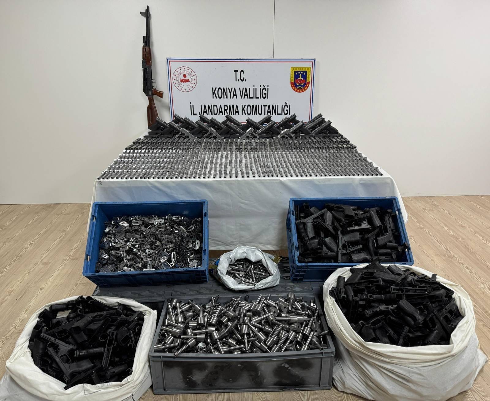 Konya İl Jandarma Komutanlığı ekiplerince, Beyşehir ilçesinde bir kişinin iş yerinden yüzlerce silah parçası ele geçirildi.