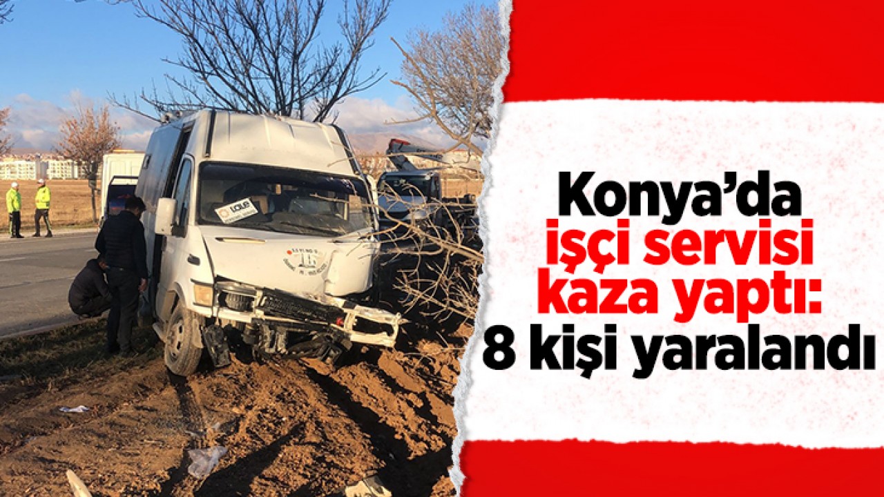 Konya'nın Selçuklu İlçesinde işçi servisinin refüjdeki ağaca çarptığı kazada 8 kişi yaralandı.