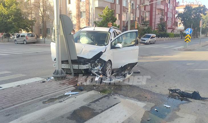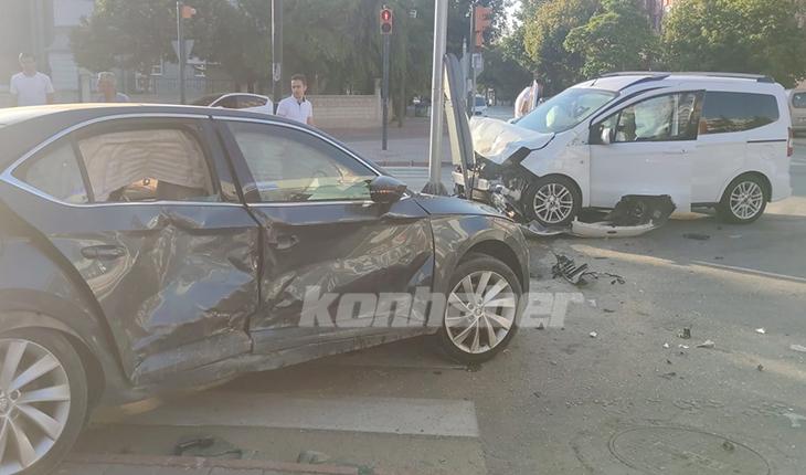 Konya’nın Karatay ilçesinde yeşil ışıkta geçtiğini iddia eden hafif ticari araç, kavşakta bir otomobille çarpıştı. Kaza da 1 kişi yaralanırken araçlarda maddi hasar oluştu.