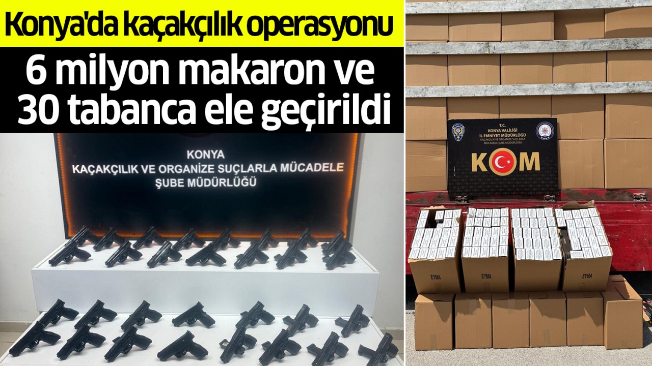 Konya'da Kaçakçılık ve Organize Suçlarla Mücadele Şube Müdürlüğü ekiplerince düzenlenen iki ayrı operasyonda, 7,5 milyon TL değerinde 6,2 milyon makaron ile 30 adet tabanca ele geçirildi. Gözaltına alınan 3 şüphelinin, haklarında adli işlem başlatıldı.