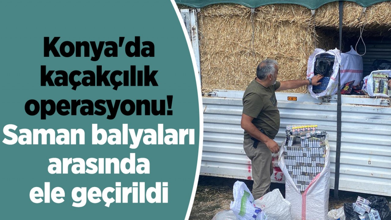 Konya'nın Karatay ilçesinde şüphe üzerine durdurulan tırın içerisinde bulunan saman balyaları arasında çok sayıda kaçak sigara ve tütün ele geçirildi.