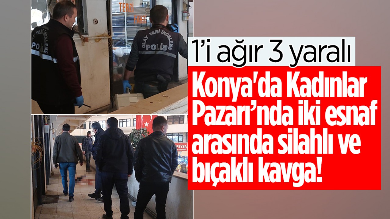 Konya’da Kadınlar Pazarı olarak bilinen Melike Hatun Çarşısında iki esnaf arasında silahlı ve bıçaklı kavga çıktı.
