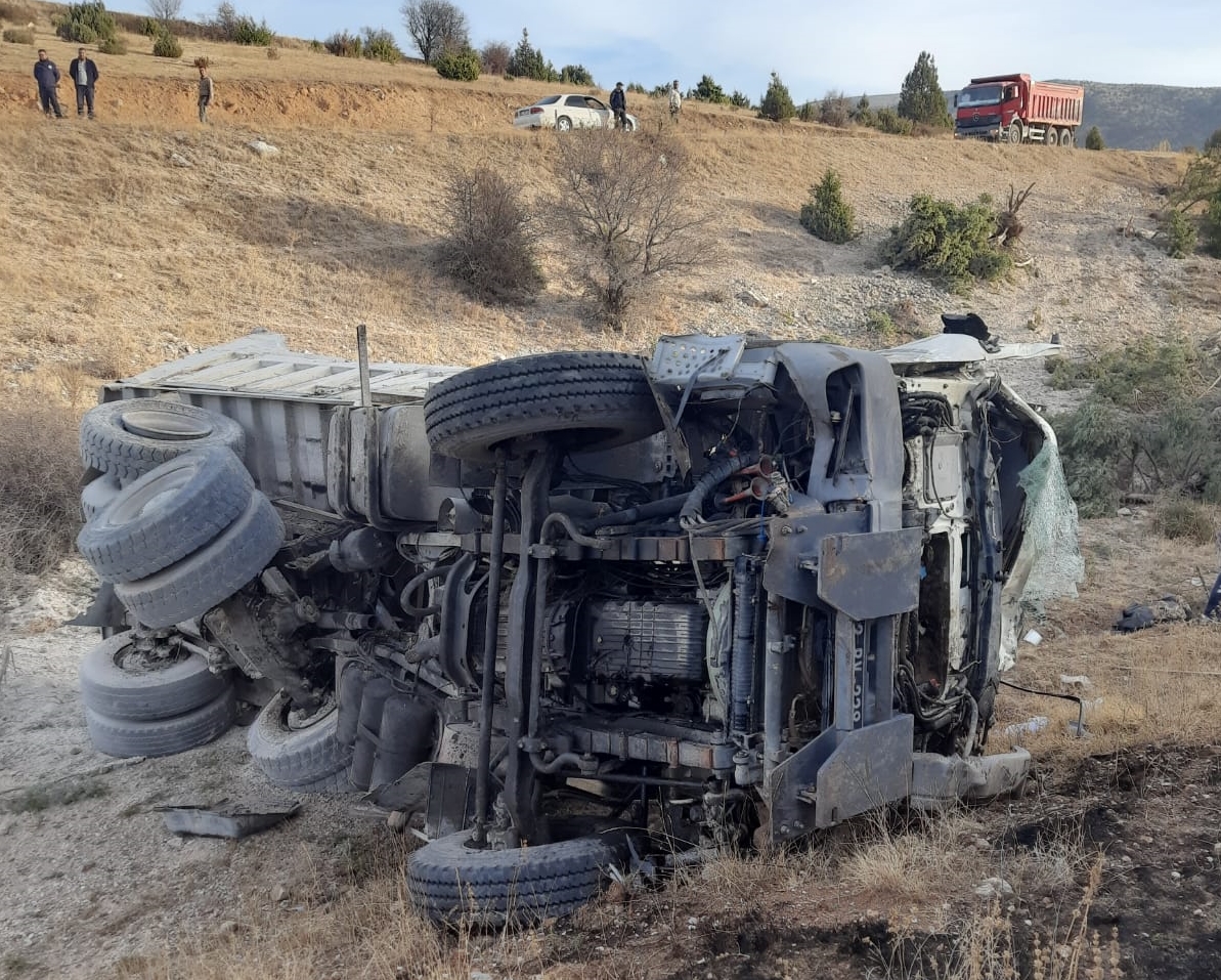 Uğur A'nın kullandığı 42 BV 238 plakalı hafriyat kamyonu, kara yolu çalışması yapılan Tepeköy mevkisinde şarampole devrildi.