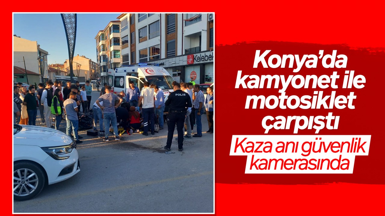 Konya'nın Kulu ilçesinde kamyonet ile otomobilin çarpışması sonucu meydana gelen trafik kazasında motosiklet sürücüsü yaralandı. Kaza anı güvenlik kamerasına yansıdı.