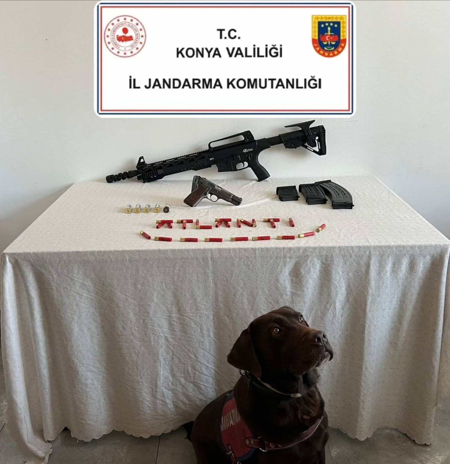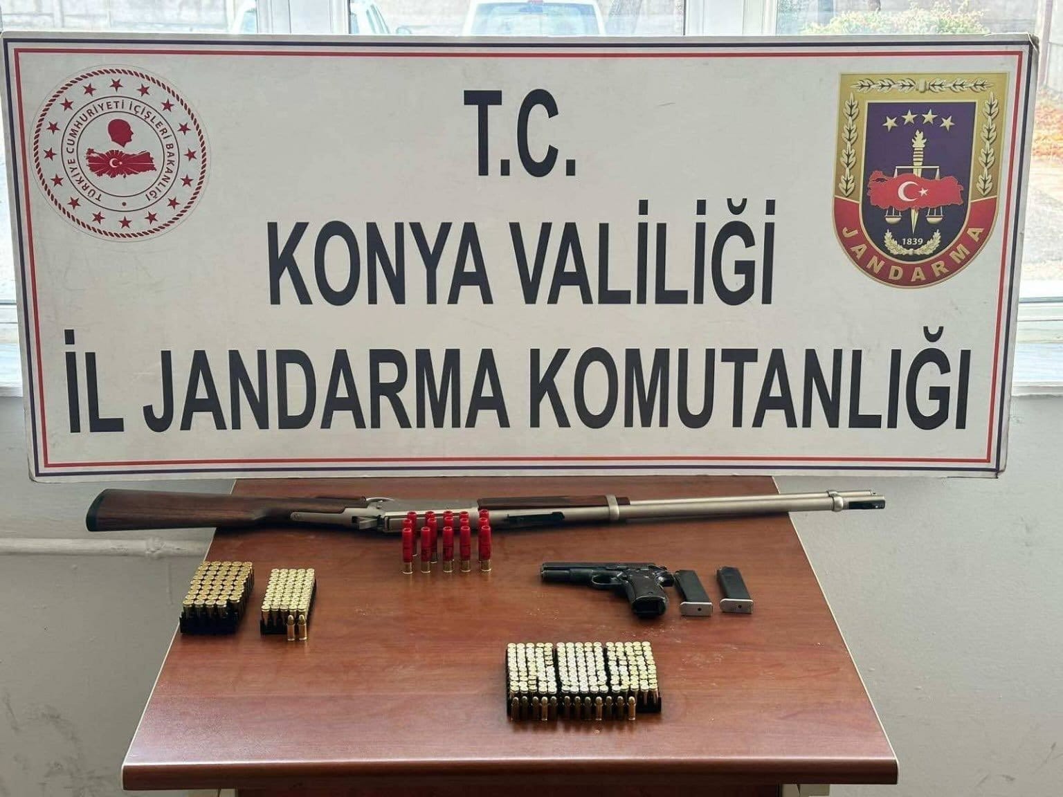 Kadınhanı ilçesinde İstihbarat Şube Müdürlüğü, KOM Şube Müdürlüğü ve Kadınhanı İlçe Jandarma Komutanlığı ekiplerince yürütülen çalışmalar kapsamında, iki şahsın Konya merkezden temin ettikleri ruhsatsız tabancaları önceden anlaştığı şahıslara satacağı bilgisine ulaşıldı. Şüphelilerin evlerinde ve araçlarında yapılan aramalarda; 1 adet 12 cal. yarı otomatik seyyar dipçik kısa pompalı av tüfeği, 1 adet 9 mm Tisaş ibareli tabanca ve boş şarjörü, 25 adet 36 cal av/ses fişeği, 5 adet 12 cal av/ses fişeği ele geçirildi.