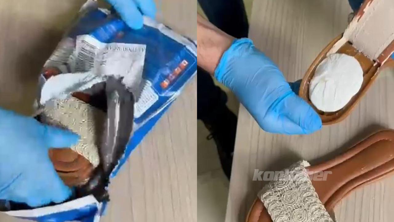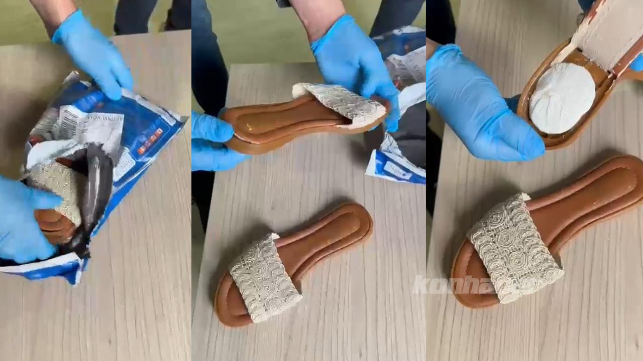 Tespit edilen adrese giden polis ekipleri, S.Ü. isimli kadın bir şahsın gelen kuryeden kargoyu teslim aldığını tespit etti. Kargo paketini açan polis ekipleri terliğin tabanına yapıştırılarak gizlenmiş halde 30 gram kokain ele geçirdi.