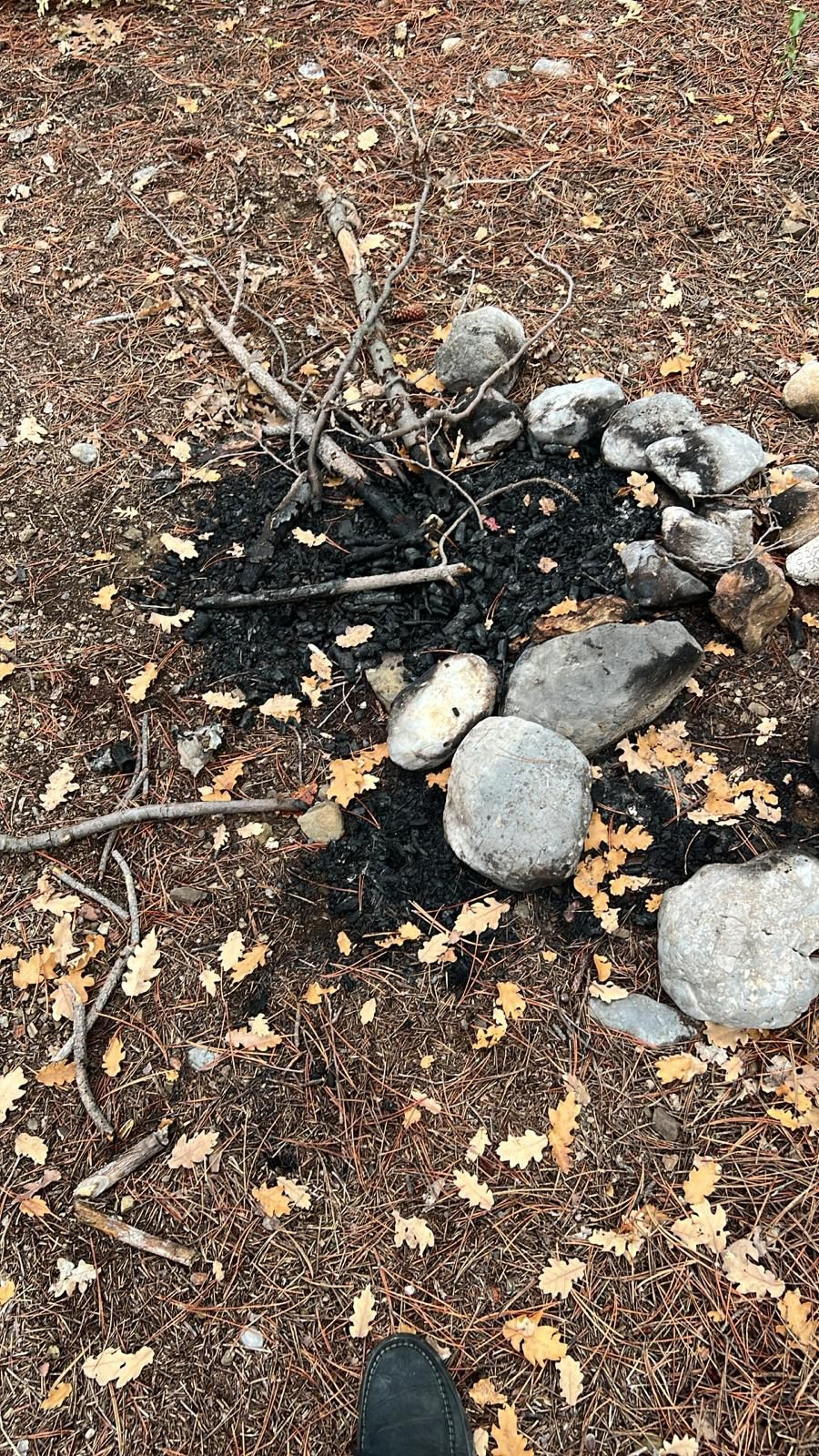 Berk İvacık’ın birkaç noktada ateş yakarak ısınmaya çalıştığı ve ağaçlardan kendisine sığınmak için alan oluşturduğu tespit edildi.