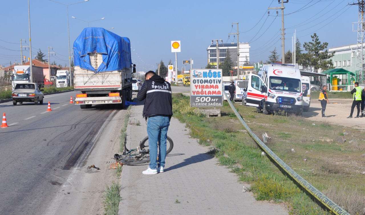 Kaza, Konya-Adana kara yolu Orhangazi Mahallesi'nde meydana geldi. Alınan bilgiye göre Mehmet K. idaresindeki 20 ABE 537 plakalı TIR, Sinan Camcı'nın (70) kullandığı bisiklete çarptı.İhbar üzerine kaza yerine sağlık ve polis ekipleri sevk edildi.
