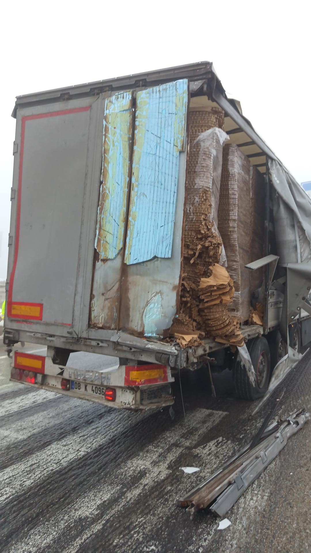 Konya'nın Karapınar ilçesinde kırmızı ışıkta bekleyen tırın dorsesine aynı yönden gelen farklı bir tırın çarpması sonucu 1 kişi yaralandı.