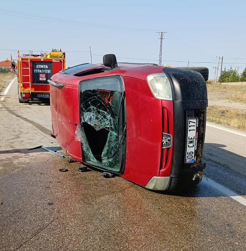 Konya'nın Kulu ilçesinde kontrolden çıkan hafif ticari aracın devrilmesi sonucu meydana gelen trafik kazasında 4 kişi yaralandı.