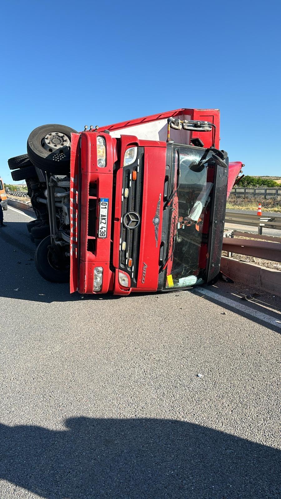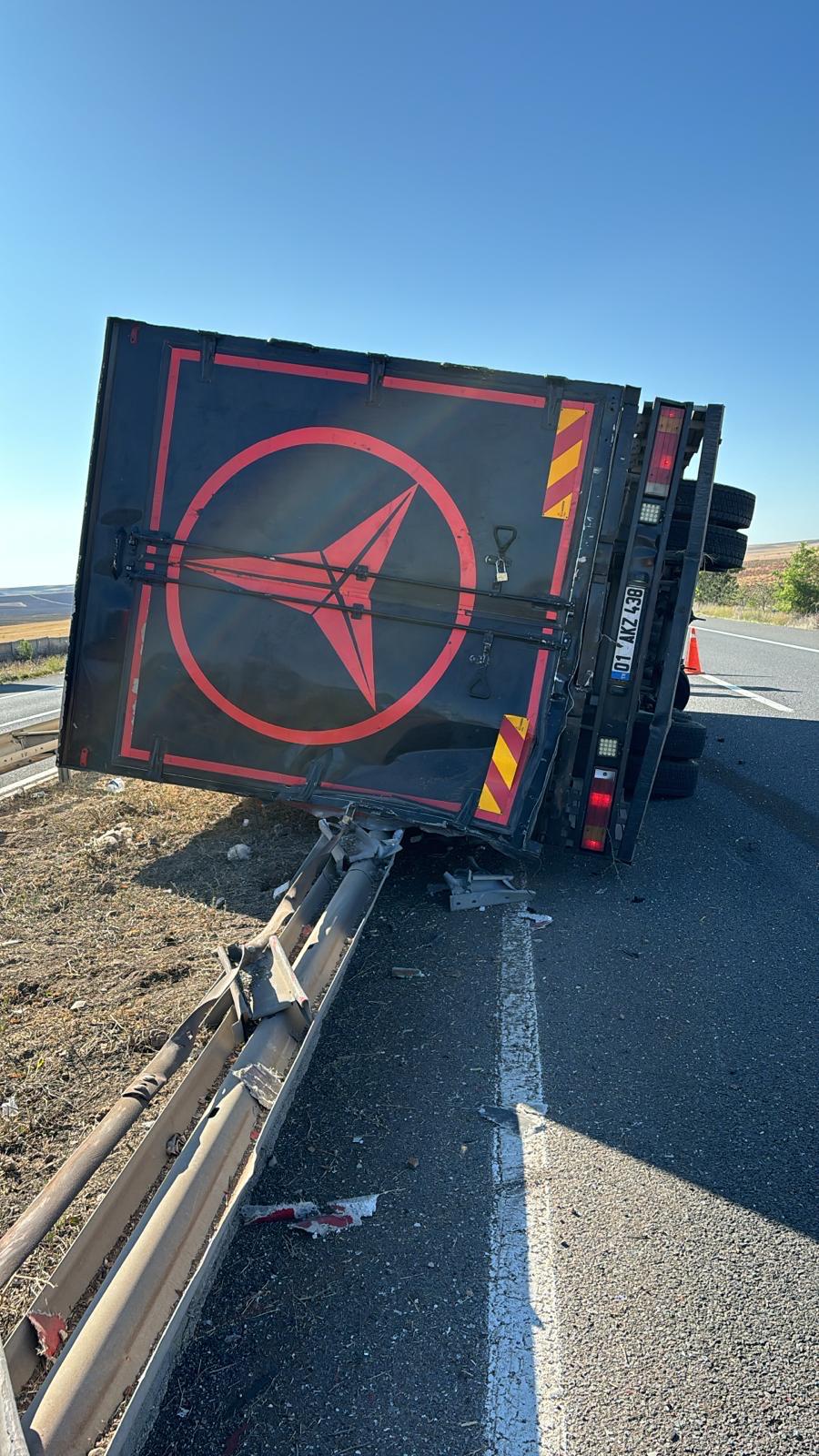 Kaza, Ankara-Aksaray yolu üzeri, Karahamzalı Mahallesi yakınlarında meydana geldi. Alınan bilgiye göre, sürücüsü öğrenilemeyen kamyon, sürücüsünün direksiyon hakimiyetini kaybetmesi sonucu kontrolden çıkarak orta refüjdeki bariyerlere çarparak devrildi.