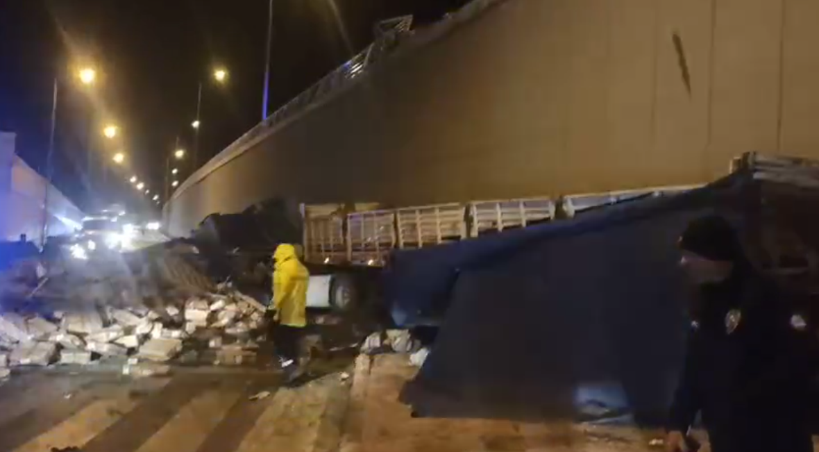 Seyir halindeki bir TIR'ın sürücüsünün direksiyon hakimiyetini kaybetmesi sonrası Selçuk Üniversitesi yakınlarındaki üst geçitten uçtu.