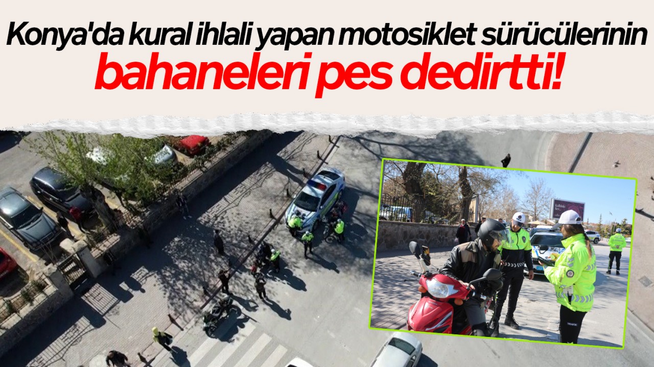 Konya’da hava sıcaklıklarının artmasıyla beraber yollara çıkan motosiklet sürücülerini denetlemek için şehrin farklı noktalarında trafik ekiplerince aralıksız denetimler yapılıyor. Polis ekiplerince durdurulan kasksız, plakasız ve ehliyetsiz sürücülerin bahaneleri ise pes dedirtti.