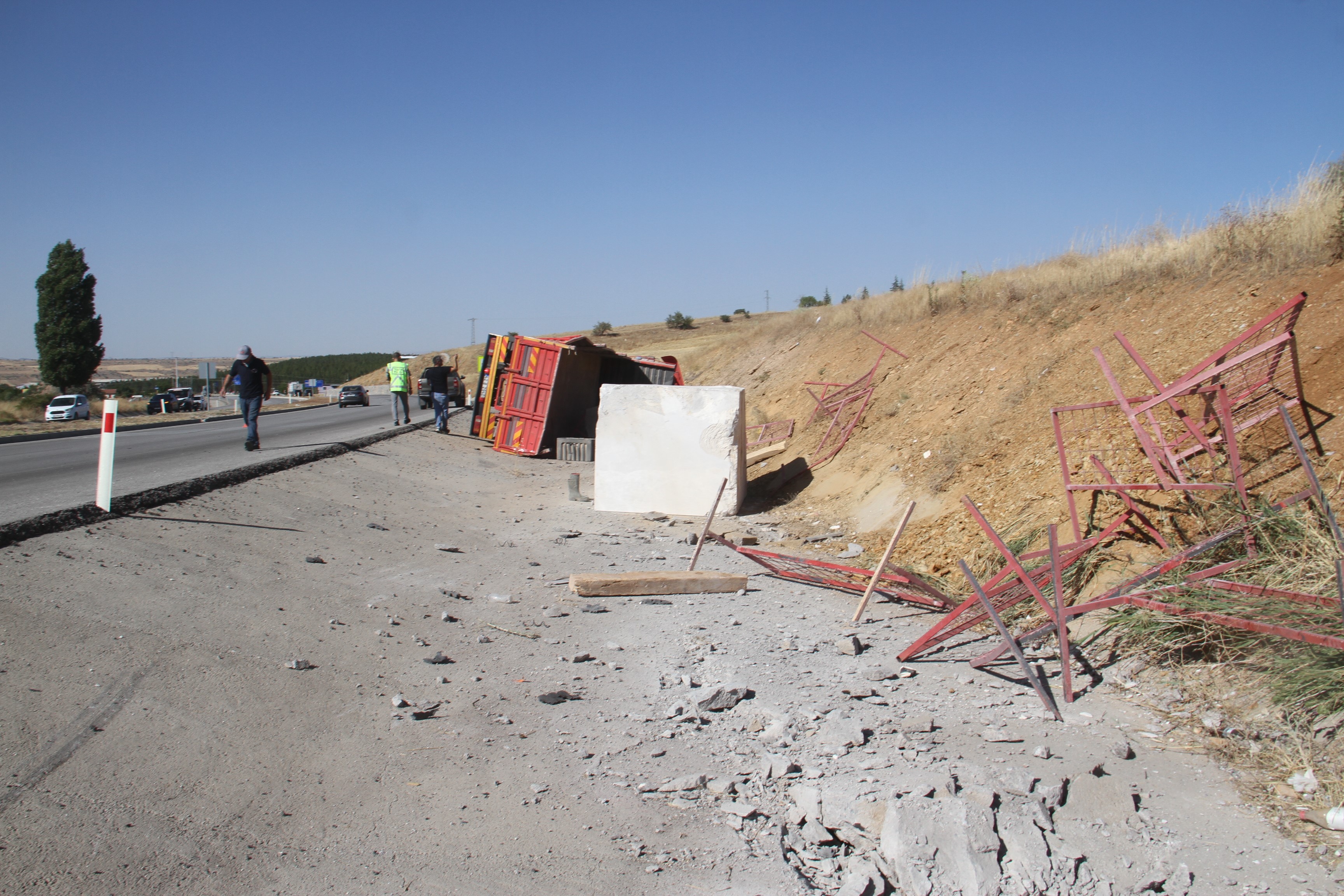 Yan yatan tırdaki mermer bloklar yol kenarına savrulurken, yaralanan sürücü ambulansla kaldırıldığı Beyşehir Devlet Hastanesinde tedavi altına alındı.