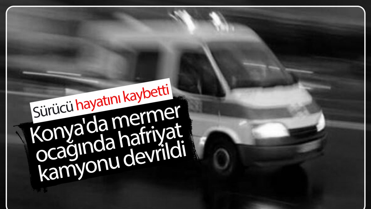 Konya'nın Beyşehir ilçesinde hafriyat kamyonunun devrilmesi sonucu meydana gelen kazada sürücü hayatını kaybetti.