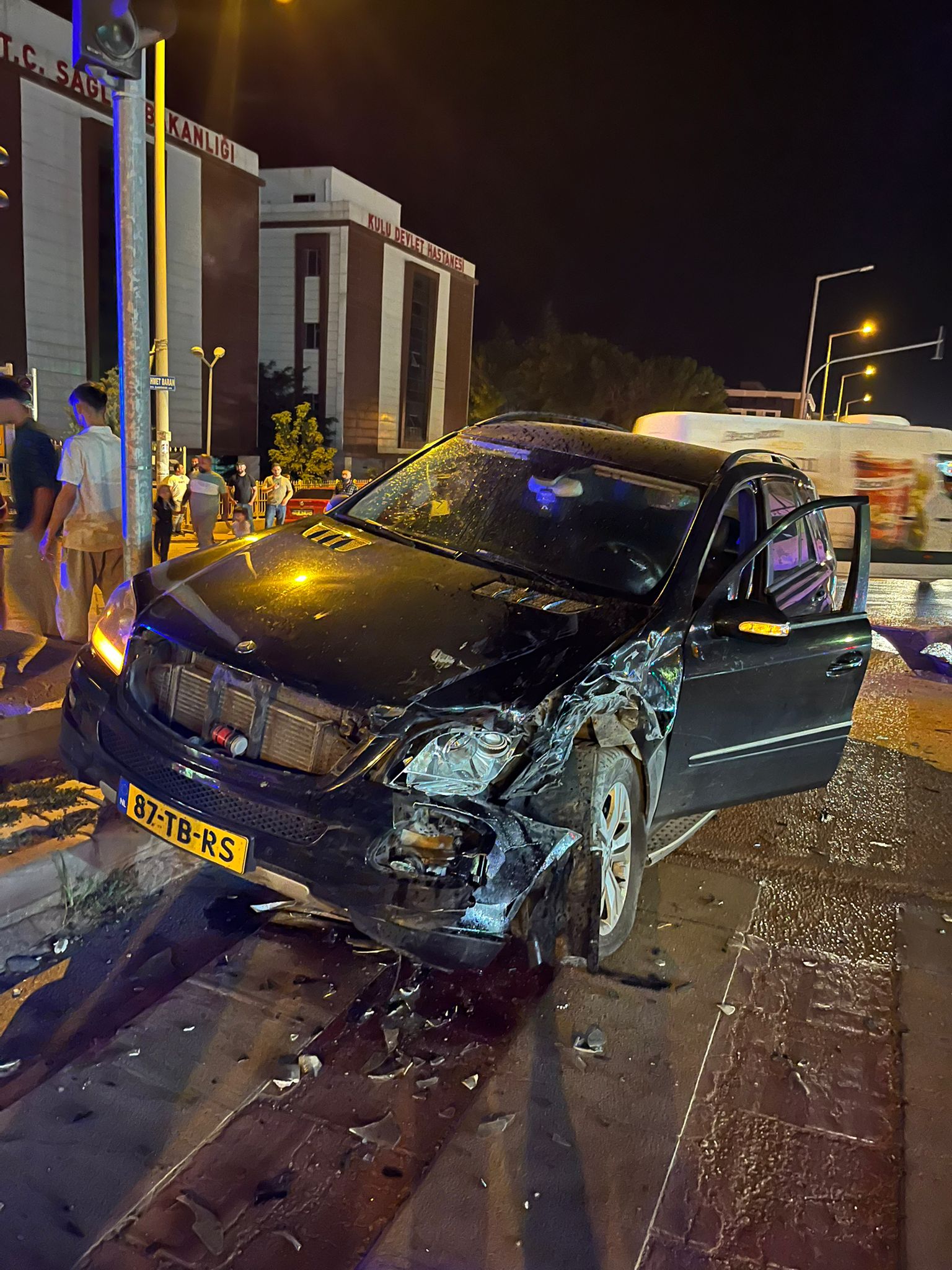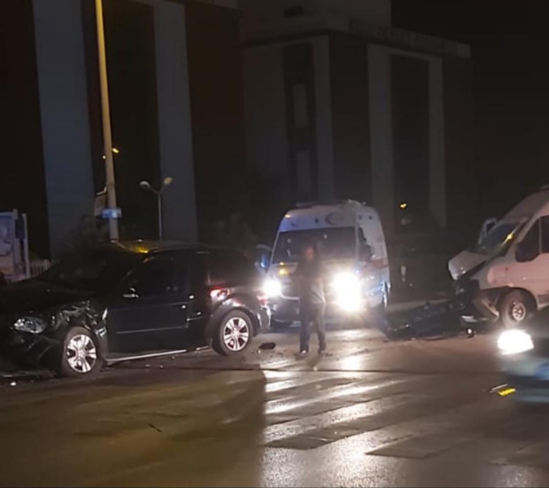 Kaza 23.00 sıralarında ilçe merkezi, eski hastane kavşağında meydana geldi. Alınan bilgiye göre, M. K. (54) idaresindeki 42 ACR 981 plakalı minibüs ile M. C. Ç. (22) idaresindeki 87 TB RS yabancı plakalı otomobil çarpıştı.