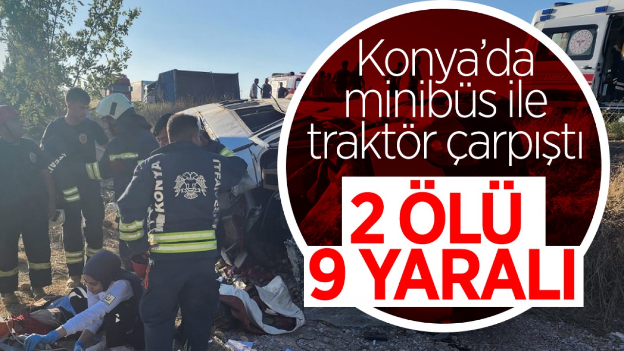 Konya'da minibüs ile traktörün çarpıştığı kazada 2 kişi hayatını kaybetti, 9 kişi yaralandı.