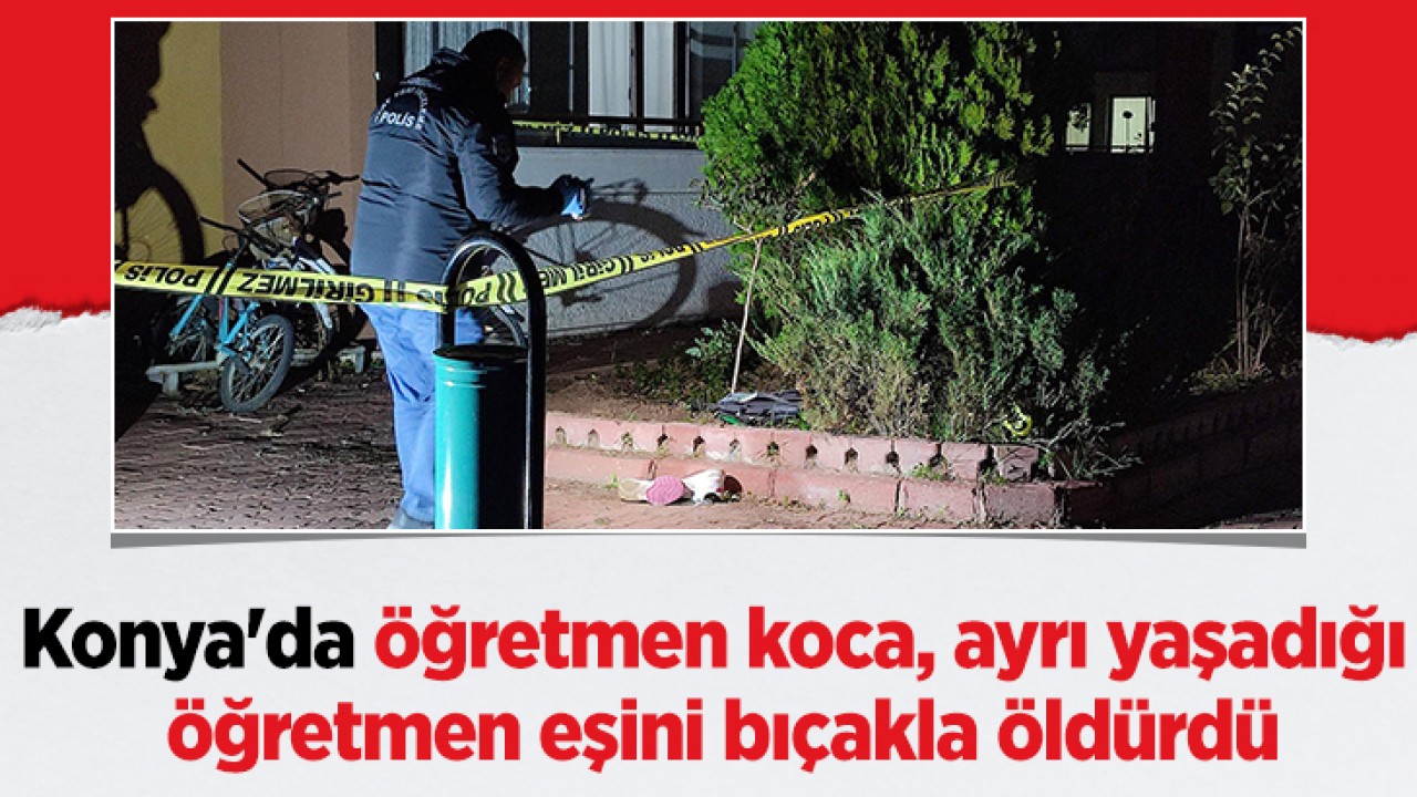 Konya'da öğretmen Abdullah K.(47), ayrı yaşadığı öğretmen eşi Ebru K.'yi(45) bıçaklayarak öldürdü.