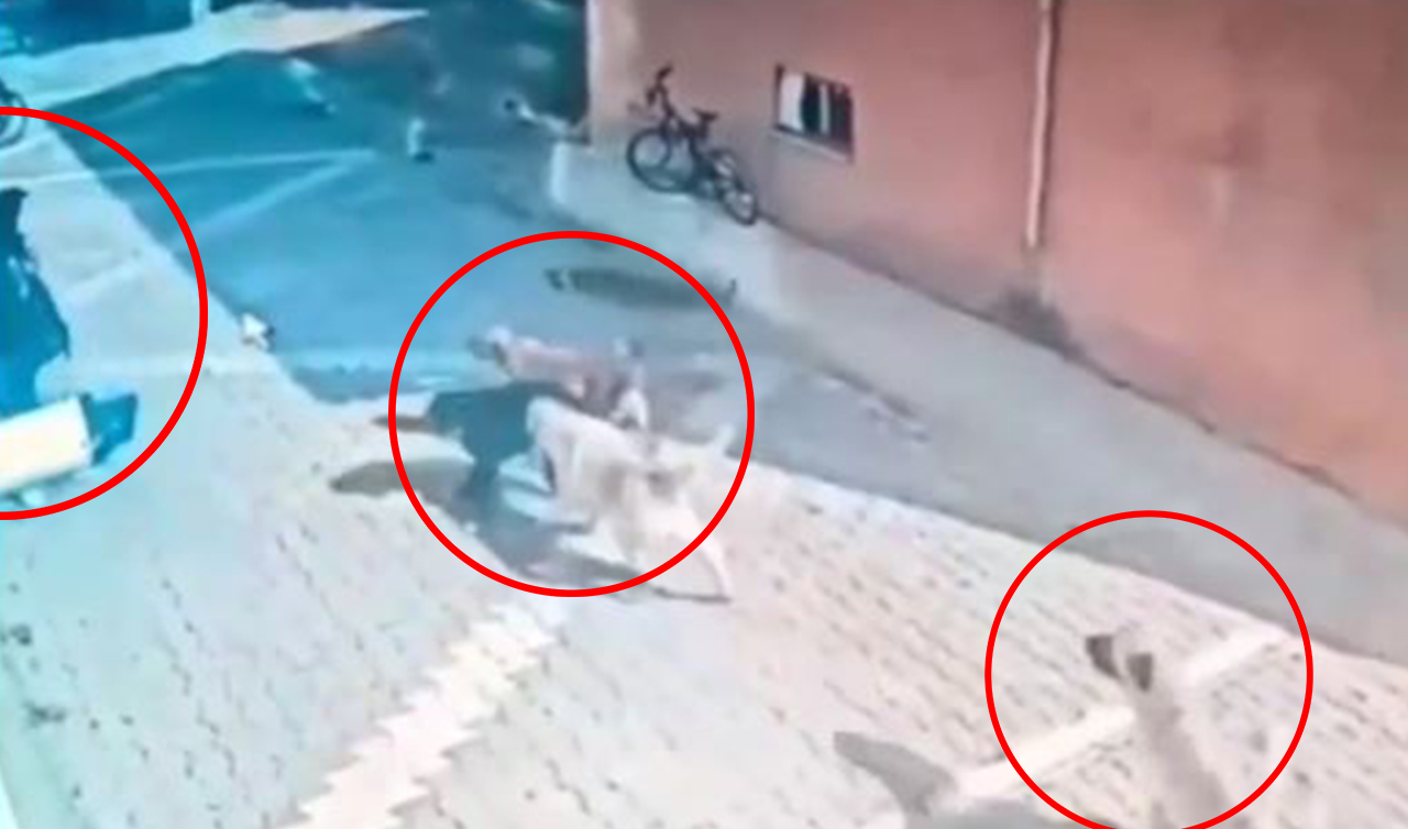 Korku dolu anların yer aldığı görüntüde köpeklerin öğrencinin üzerine koştuğu görüldü. Lise öğrencisi köpeklerden kurtulmak için çantasını kalkan olarak kullanırken, çevredekilerin yanına gelmesiyle canını zor kurtardı. (Yunus Köroğlu)