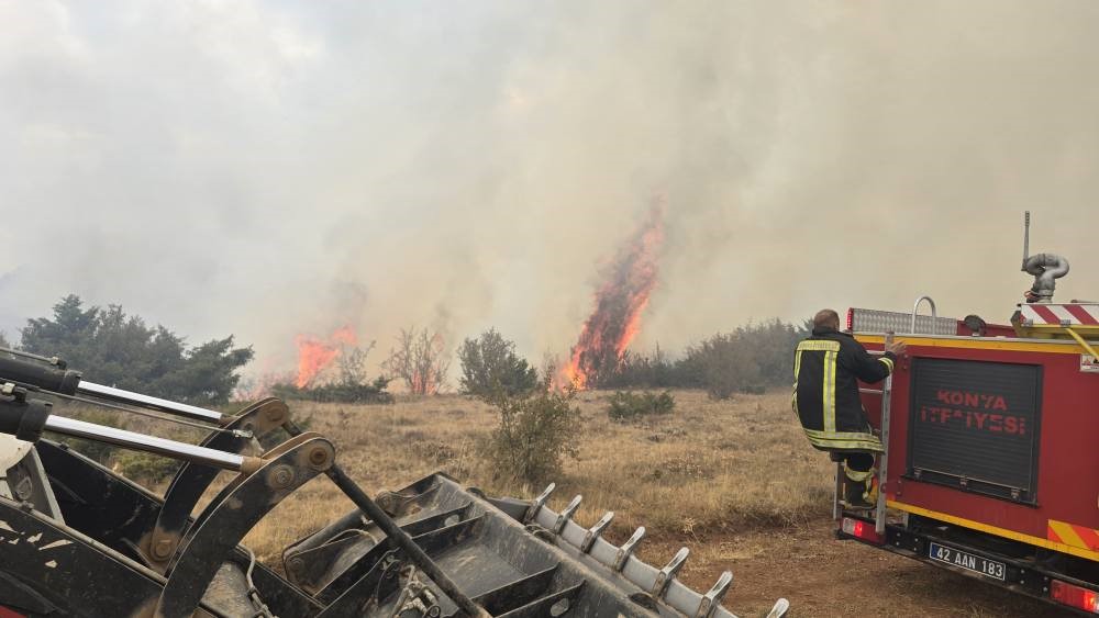 Konya’nın Derbent ilçesinde ormanlık alanda çıkan yangın güçlükle söndürüldü.