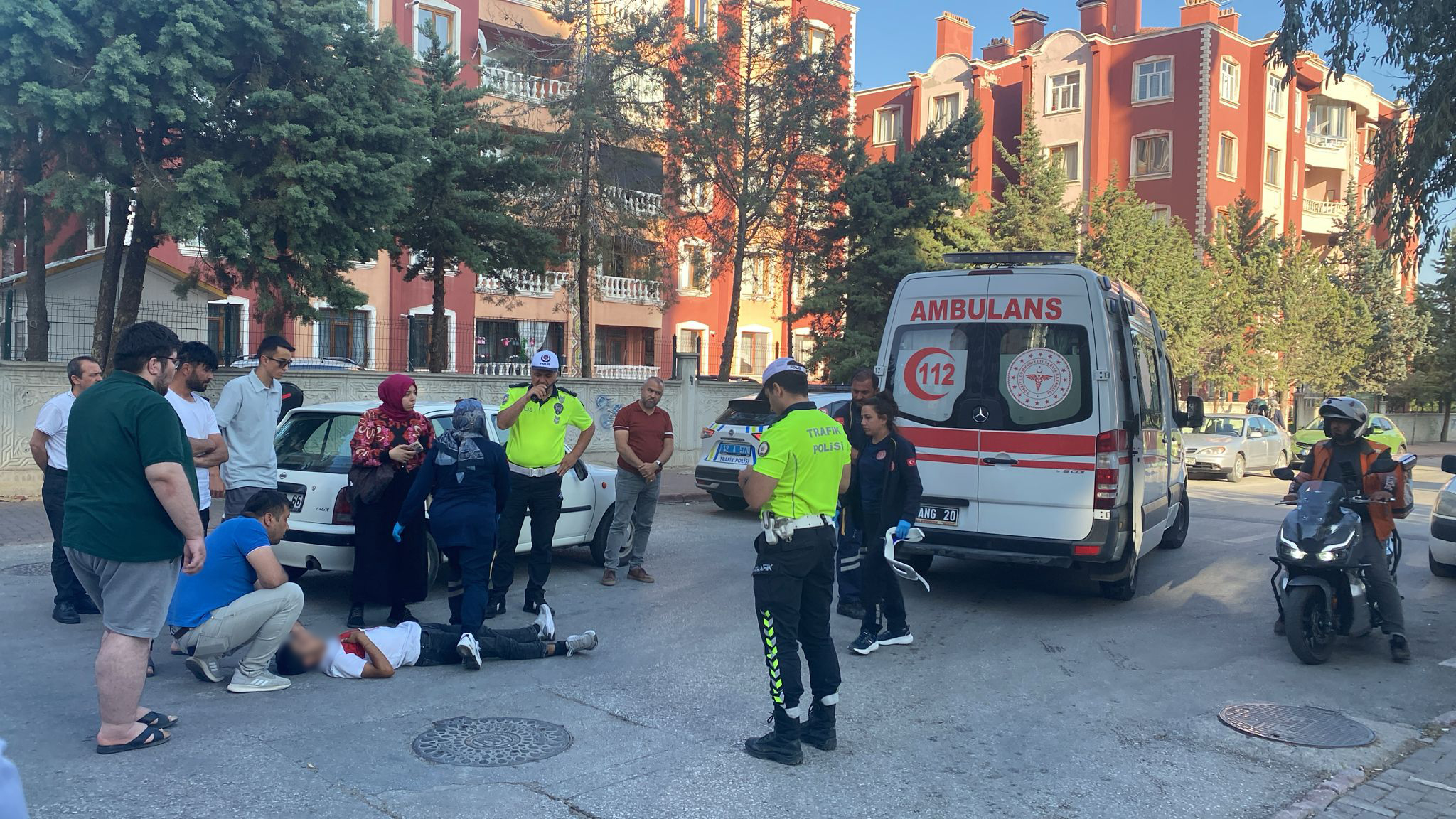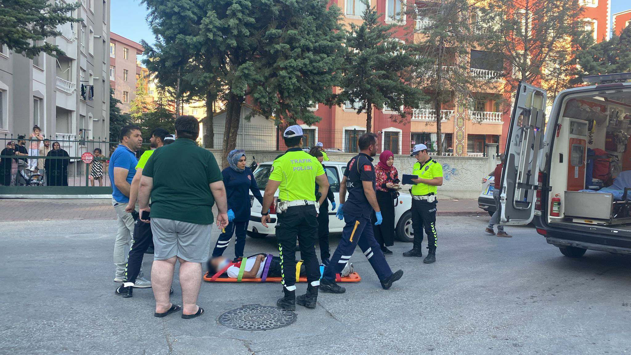 Yaralı bisikletli ilk müdahalesinin ardından ambulansla hastaneye sevk edilirken, soruşturma sürüyor.