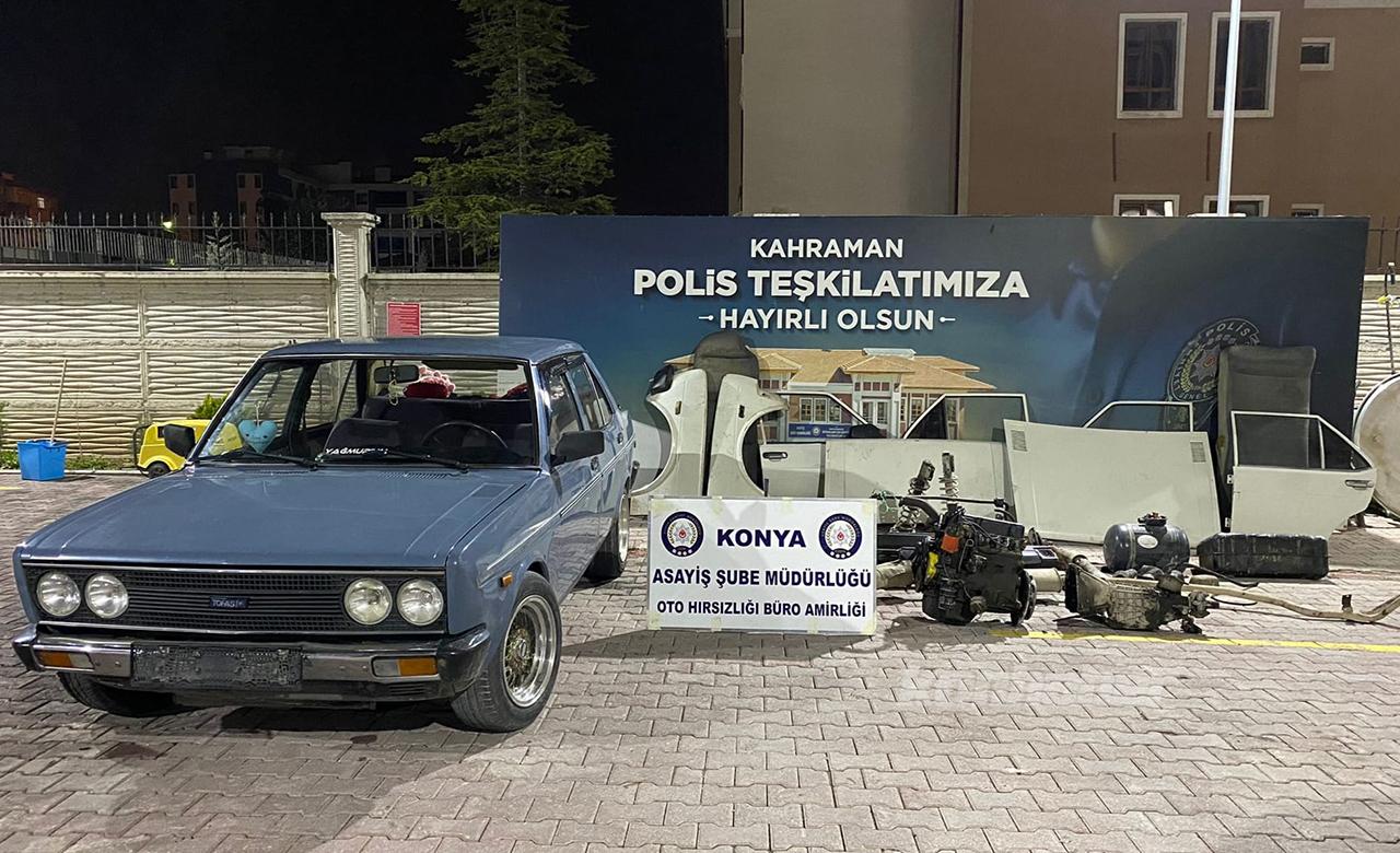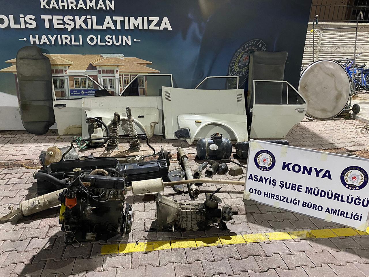 Polis ekipleri, şüphelileri tespit etmek için yüzlerce saatlik kamera görüntülerini izledi. Yapılan incelemelerde Selçuklu İlçesi Sancak Mahallesinde, çalınan araca benzer bir araç görülmesi üzerine ekipler aracın görüldüğü adrese gitti. Bölgede araştırma yapan Oto Hırsızlık Büro Amirliği ekipleri, aynı renk ve modelde, plakası farklı olan bir araç buldu.