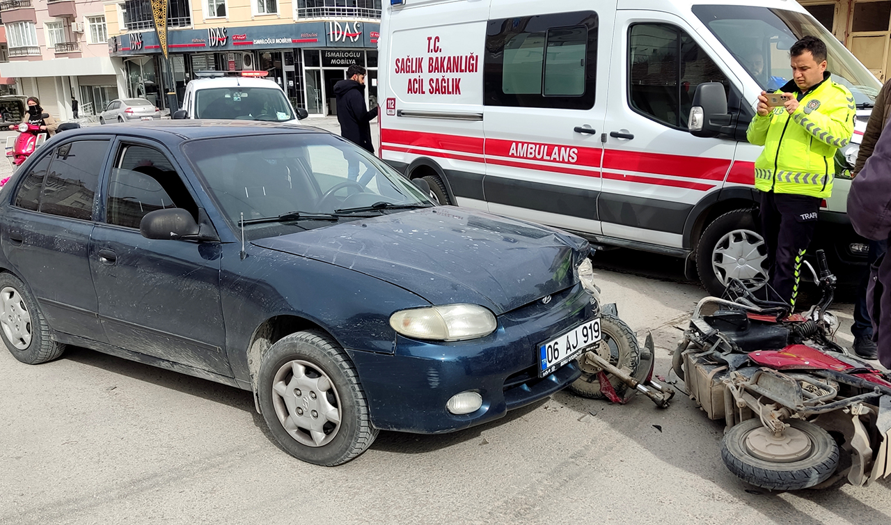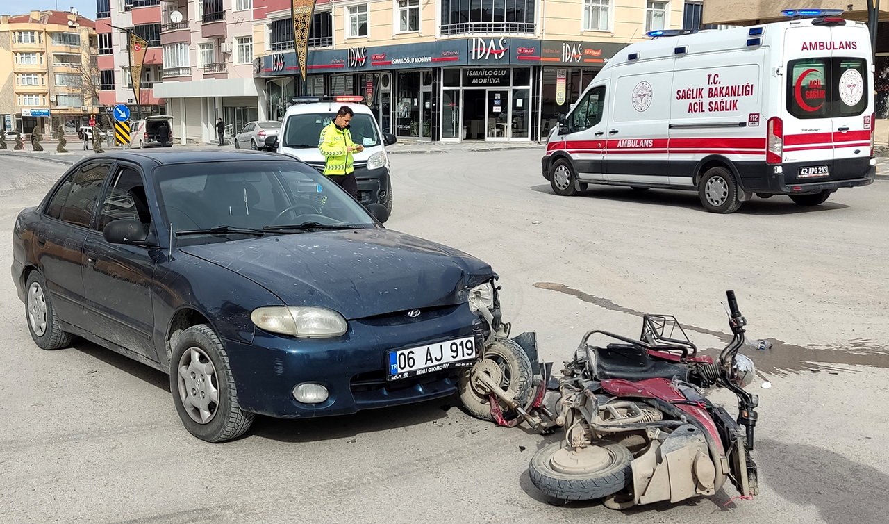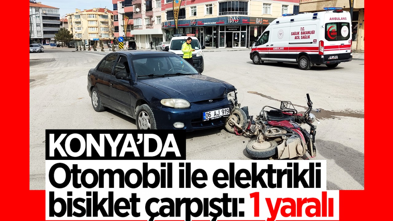 Konya'nın Kulu ilçesinde otomobil ile elektrikli bisikletin çarpışması sonucu meydana gelen kazada 1 kişi yaralandı.